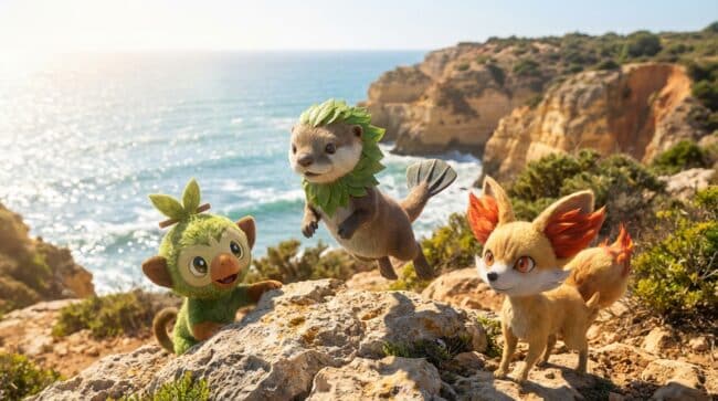 Pokémon Winds and Waves chega com um foco claro em exploração e combate mais fluido. Os iniciadores oficiais já foram confirmados, e eles dizem muito sobre o ritmo do jogo. Quer o essencial, sem enrolação? Então vamo lá! Iniciadores oficiais de Pokémon Winds and Waves Os três iniciadores oficiais são Sprigatito, Fuecoco e Quaxly. Sim, o trio de Paldea volta ao centro do palco. A escolha parece bem intencional, porque combina direitinho com a ideia de ventos, rotas costeiras e viagens rápidas. Sprigatito puxa pro estilo ágil. Ele encaixa com quem gosta de se mexer, sair da rota, procurar atalhos e itens. No começo, ele tende a brilhar em confrontos curtos, daquele jeito que você ganha no detalhe. Fuecoco é o oposto em energia. Ele é direto, meio caótico, e casa com um jogo que promete encontros mais frequentes e mudanças de clima. Pra quem curte segurar a linha e bater forte, ele tem um sabor bom. Quaxly fecha o trio com uma vibe “mobilidade…